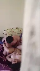 寝ている彼氏にフェラチオをしてから友達のチンポにまたがる女子大生 - 隠しカメラが全てを捉える!