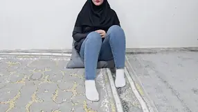 ヒジャーブを身に着けた美女が、彼女のきついマンコに硬いチンポを受け入れ、全身で潮を吹きます。